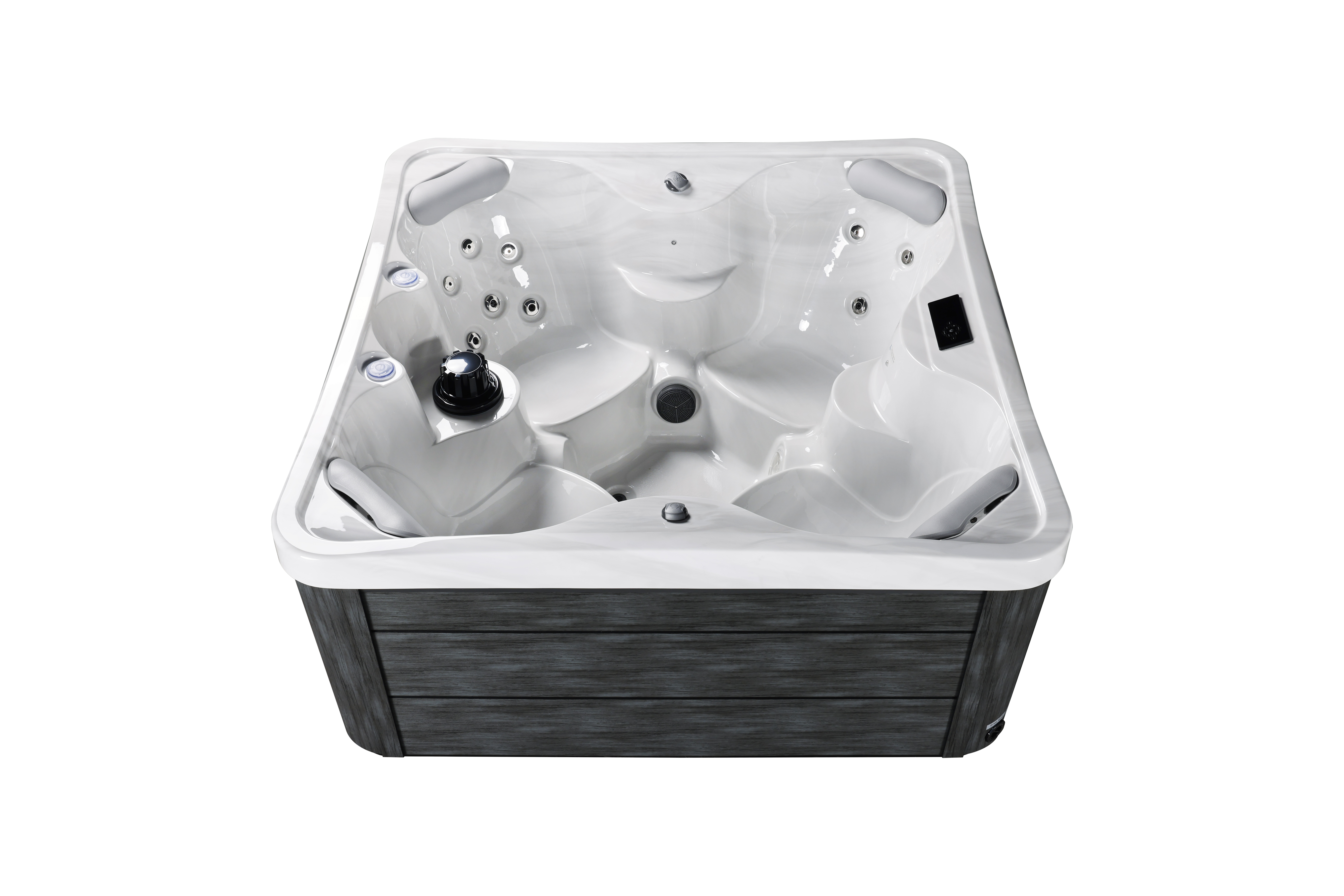 NordicSpa Nyerd с размером чаши 1,8 x 1,8 м идеально подходит для установки как в помещении, так и на улице. Компактная квадратная форма с четырьмя эргономичными подголовниками комфортно вмещает до четырех человек, создавая уютную атмосферу для отдыха и общения.